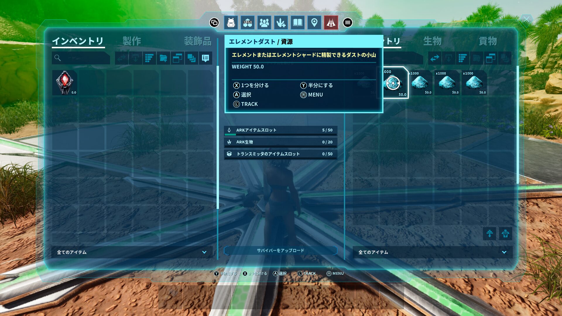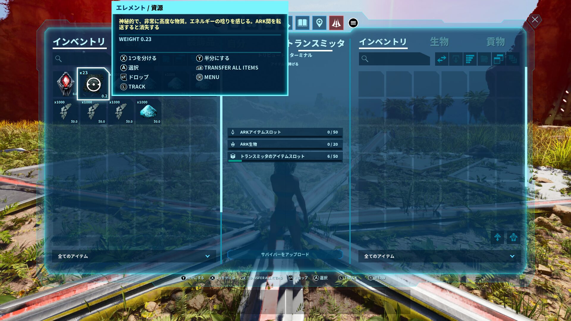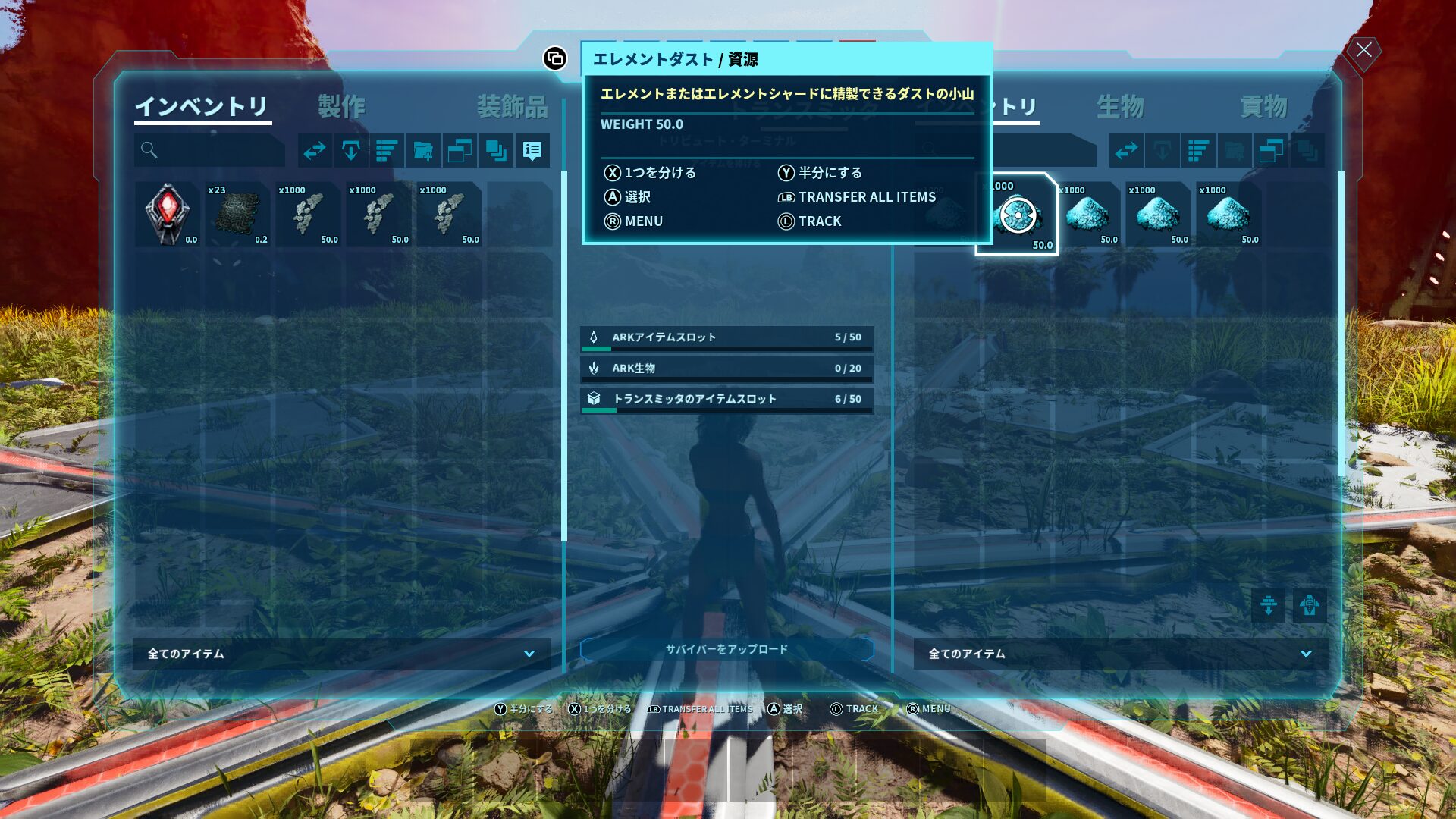 そしてターミナルのインベントリにエレメントダストを入れてサバイバーをアップデートして、他マップのターミナルからエレメントダストを取り出します!