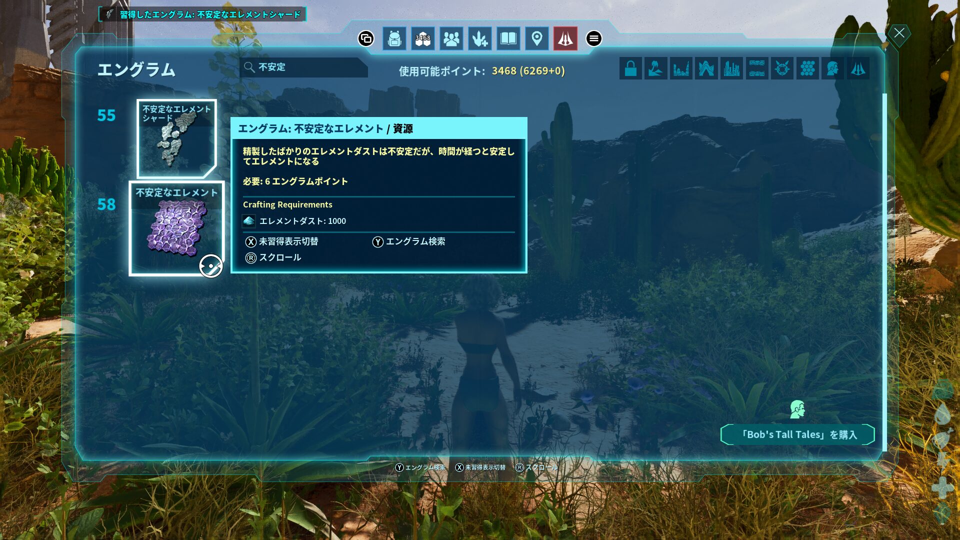 もちろんこのままだとただのエレメントダストなので、エレメントダストを今度は不安定なエレメントに変換します!因みに不安定なエレメントのエングラム開放レベルは58レベルで、エレメントダスト1000個で1個製作可能となっています!