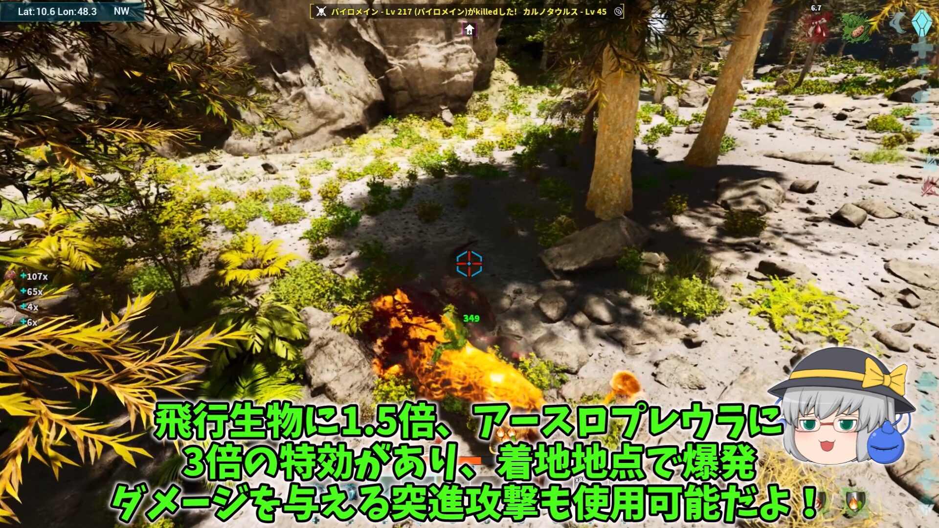 飛行生物に1.5倍アースロプレウラに3倍の特効があって、着地地点で爆発ダメージを与える突進攻撃も使用可能で