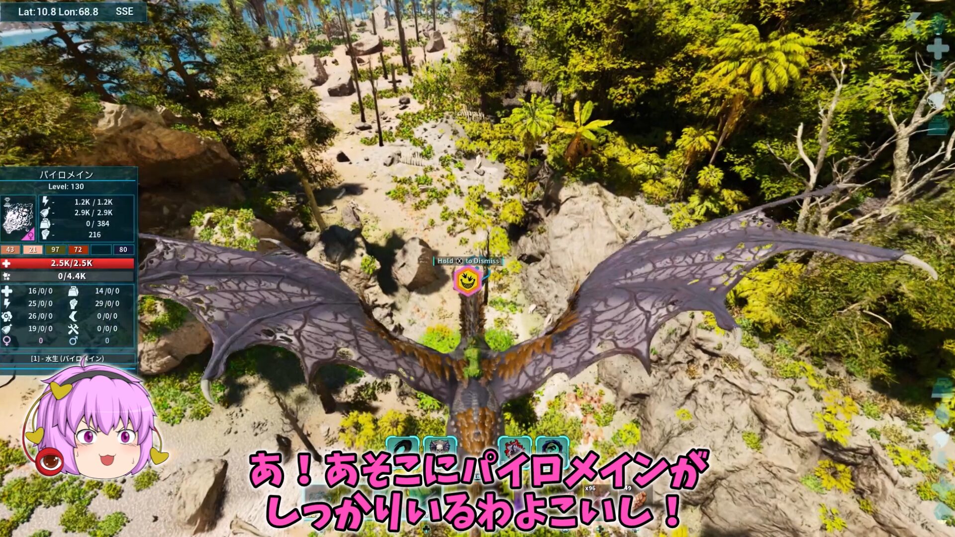 ただスコーチドアースでテイムする際は注意が必要で、私達だけかもしれませんが、ワイバーンの巣でリニオグナタをポッドから出そうとしたらキャラクターデータがクラッシュして消滅したり、ワイバーンの巣にゲームを再起動しないと生物が湧かないバグが発生しました(汗)