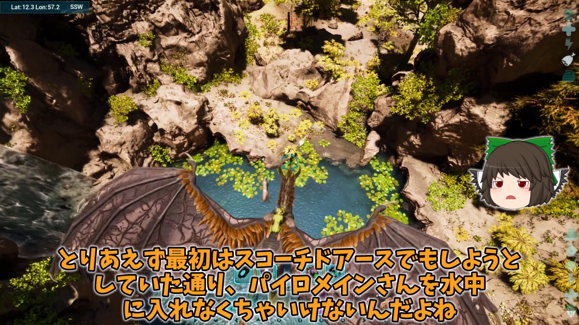 もし近くに水辺がない場合に関してはアルゲンタヴィスワイバーンで掴んだり、飛行生物が使用できないアベレーションではカルキノスで掴んで水のある場所まで運ぶと楽にテイムが可能です